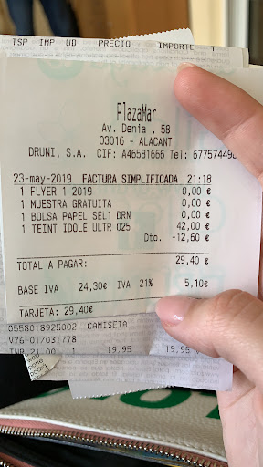 No es la primera vez que compro aquí pero si la primera que me ha pasado, nunca voy a Druni para comprar cosas de alta gama por lo que nunca me había salido en un ticket eso de muestra gratuita pero desde luego NO VUELVO A COMPRAR EN ESTE CON ESTA DEPENDIENTA. Si voy a otros establecimientos NO me insisten en que me lleve otro producto y más si repito bastantes veces que no quiero nada más porque no lo necesito, de hecho en la competencia me dan cualquier muestra y aunque no me guste lo agradezco por el gesto y solo por el buen trato vuelvo. Aquí ni muestra obligatoria ni un gesto...