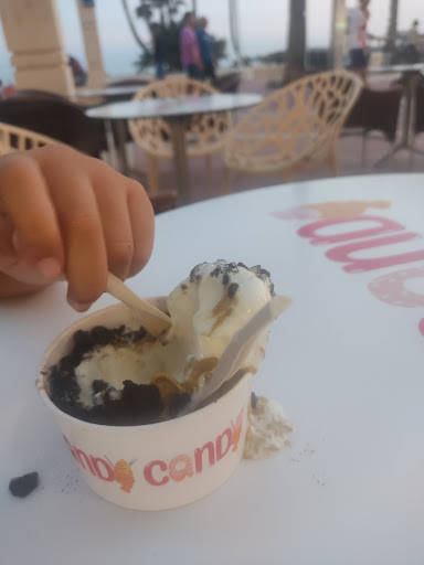 Read moreImaginaos esta situación, sales a dar un paseo al paseo marítimo con tu hijo o hija, pasáis frente una heladería y tu niño te pide entrar, entras y lo primero que ves es un cartel enorme que pone “candy cock” que basicamente es un pen* de gofre, de inmediato tu hijo o hija te dice, papá papá que es eso ? Gracias a dios no ha sido mi caso pero no le deseo eso ni a mi peor enemigo, pasemos con el local y la comida, llegamos y todas las mesas están sucias y sin recoger, eso se debe a que solo tienen una persona en el local, quien no da a basto cuando se llena, pedimos el helado y el chico nos atiende bien, mi helado tenías más topping por fuera que por dentro, aparte que no está bueno, el yogur me da un regusto a queso podrido al final y el yogur de chocolate tiene un regusto a leche agria pasada, la atención fue buena, pero entre el producto y la asquerosidad que vendan pen*s de gofre, no...