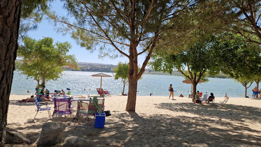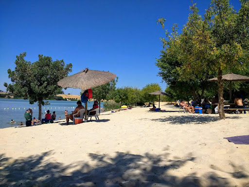 What a fantastic man made sandy beach! Plenty of free parking nearby. The water is warm and can be enjoyed by kids and adults. A life guard was present but didn't seem very vigilant. There was a road-side kiosk nearby that was selling cold drinks and ice creams. There was also a cafe. Although if you don't speak basic Spanish, you may struggle to order anything. Not far from the cafe is a place that you can hire kayaks and paddle boards etc. Again, if you don't speak some Spanish, you may not get what you want. I would highly recommend a trip to this beach and lake!