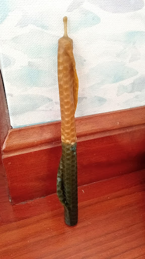 Luego, las siguientes actividades las hicimos con Monica, pasamos a la sala donde se ven abejas, y se realiza el taller de cera, aquí como punto a mejorar diría dos cosas: -Que te dejen realizar la vela desde 0, no que la persona que te lo enseña ponga la mecha y empieza envolviendo la vela (ya que éramos todos adultos y no creo que tuviéramos problema en manipular). Lo mismo al manipular el color. -Que se use cera de verdad (No la sintética) en realizar la vela.