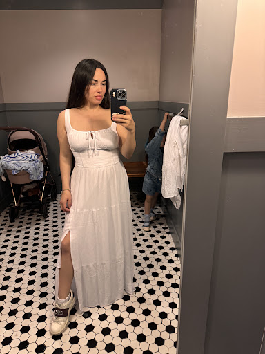 Al salir, dejo las prendas y pienso, debe haberse ido. Pues no, seguía al lado de mi probador. Al salir, me ha preguntado cómo que no me llevaba ninguna. Y se ha puesto a contarlas de nuevo. Me ha sentido tan frustrada que me he ido muy rápido de la tienda.