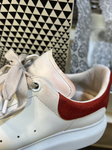 En fecha 23/4/2024 se adquirieron zapatillas Alexander Mcqueen valoradas en 500€. En fecha 1/8/2024 fuimos a la tienda Santa Eulalia con las zapatillas para mostrar los desperfectos que presentaban. En concreto, el desperfecto era que se habían desteñido por la pieza de ante rojo que tienen en la parte trasera.
