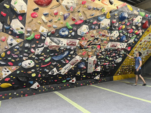 First and most importantly, there is a huge absence of thoughtfully set down-climbing holds which does not promote the safety and well being of your customers and climbers. Having been to other climbing gyms, there should be holds to sufficiently allow a climber to climb down safely rather than hope everyone can jump down without suffering some sort of injury by only using two or three holds to climb down. Just today I jumped down from a problem (pic of red tagged black pieces problem included. There are two safety holds and then nothing but purple holds of a black tag route to climb down with) and suffered a mild back injury that I can't help but imagine could've been avoided if more down-climbing was encouraged more at this gym.