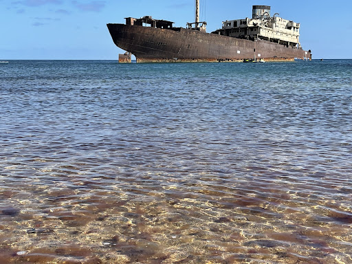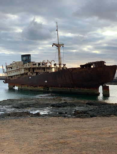 The Telamón Shipwreck: • History: Originally named Temple Hall, the Telamón was a cargo ship built in 1954. It was carrying wood when it suffered a structural failure and began taking on water near Lanzarote in 1981. The ship was deliberately grounded near Arrecife to prevent it from sinking completely. • Location: It rests partially submerged near Las Caletas, just outside the main port of Arrecife. • Current State: The rusting hull of the Telamón has become a striking feature of the coastline, often called the “ghost ship” of Lanzarote due to its abandoned and haunting appearance. • Tourism: While you cannot explore the wreck up close for safety reasons, it is a popular spot for photography and can be viewed from the nearby shore.
