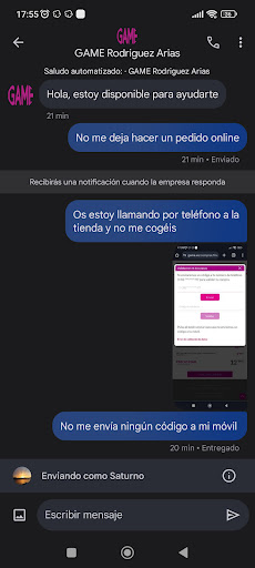 Toda la tarde llamando por teléfono a la tienda sin que nadie cogiera el teléfono más de 20 llamadas, para consultar si con la reserva nos asegurabamos un copia del juego o como pone en la app al pinchar el la reserva hay que hacer la precompra, al no ser atendidos telefónicamente y para asegurarnos el juego el día de su salida hacemos la precompra de una reserva hecha en tienda desde la app de game para asegurar que mi hijo tuviera su juego favorito el día de su salida ( reserva hecha más de 8 meses antes de su salida) al llegar a la tienda nos dicen que ellos no tienen que ver nada con las precompras y que no saben como funciona la app de game y que tengo que esperar a que me manden un correo para recogerlo en la tienda, la única solución que me Dan es que compre el juego 2 veces y venga otro dia a devolverlo teniendo que hacer mas de 50km de ida y vuelta por su incompetencia. Es una vergüenza que esto pase en una tienda como GAME, no cogen el teléfono no saben como funcionan sus propias aplicaciones y es más cara que cualquier otra tienda como mediamark o Amazon donde jamás vas a tener problemas de este tipo. Iré por el juego resignado cuando me llegue el correo y prendere fuego a la tarjeta de socio...