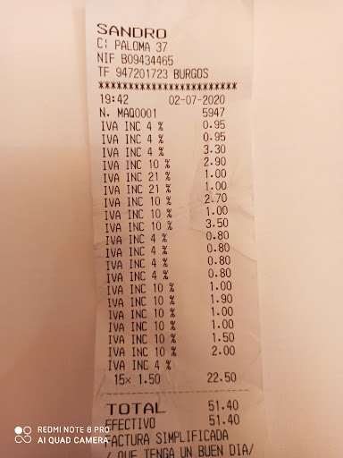 Read moreHoy 2 de Julio he ido a comprar con mi familia en esta impresentable tienducha. Hemos venido a pasar unos días a Burgos y la idea era comprar los víveres básicos para desayunar y cenar en nuestro apartamento. Los estantes de la tienda con un dedo de polvo, la fruta y verdura de chiste. Pero lo mejor ha llegado al final, este señor nos ha cobrado 22 euros de más, ascendiendo la cuenta a 52 euros, cuando el importe real de lo adquirido era 30. Cómo aparece en la imagen que adjunto, al final aparece como nos ha intentado cobrar 15 cartones de leche cuando nos habíamos llevado sólo uno. Ante el importe desorbitado que quería cobrarnos le he pedido el ticket y se ha puesto nervioso, diciendo que no podía ser, que se debía haber equivocado, marcando en lugar de un 1 un 15. No voy a entrar en valoraciones jurídicas ni en imputaciones por mi parte, pero andaos con ojo si vais a comprar a este lugar, sobretodo los turistas. Yo, por supuesto, no...