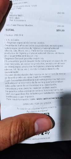 Read moreMala experiencia la verdad. Entiendo que sea franquicia, y que tasen bajo los productos porque es un negocio y si aceptas su precio es cuestión de cada uno, lo que no puedo llegar a entender es el echo de que en la página online de Cashconverters subas imágenes del producto a tasar, tengas que subir fotos y comentarios con los problemas o daños del producto, te lo tasen al precio que te den ( habiendo subido fotos con un golpe en un móvil, en el cual se especifica que tiene un golpe, tanto en texto como en la imagen) te lo tasen con una cantidad, desde esa misma página te redireccionen hacia la tienda para hacer la venta recuperable (en este caso la de la Avenida Marconi en Cadiz), y una vez llegues a la tienda, en la que te han dado cita previa desde la propia página de la empresa, te digan que con golpes no aceptan ningún producto, atendiendo a la razón, de que son franquicia, y su técnico no les tiene permitido aceptar ningún producto con golpes, entiendo que no se pueden ver todos los detalles online mediante únicamente fotos, pero ni probar el funcionamiento hicieron, entiendo que pongan que el precio puede variar cuando lo vean en la tienda física pero de ahí a directamente negar la venta recuperable por golpes que en la página online daban como tasados sin problema... No sé el resto de filiales de la empresa, pero desde luego esta, se aprovecha del nombre Cash Converters para después, utilizar una política diferente a la de la propia empresa. En la foto que mando de la tasación pone que "puede variar en función de la revisión y prueba del artículo..." no ha habido revisión alguna, simplemente el fallo comentado en la web a simple vista ya anuló toda...