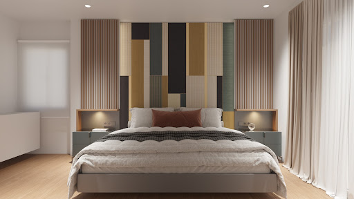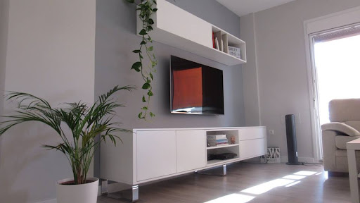 Adquirimos dos armarios a medida, un cabecero con mesitas de noche, una mesa grande para el salón, unas estanterías a medida con una mesa y un mueble para la TV.