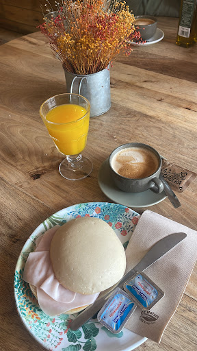 Cada vez que voy, tengo mi elección clara: mollete con pavo y mantequilla, acompañado de un café bien preparado. La calidad del pan es excepcional, con esa textura esponjosa y el punto justo de tostado. Pero el detalle que hace que este desayuno sea aún más especial es el chupito de zumo de naranja que te sirven como cortesía de la casa, un gesto que marca la diferencia y te deja con una sonrisa. 🍊😊