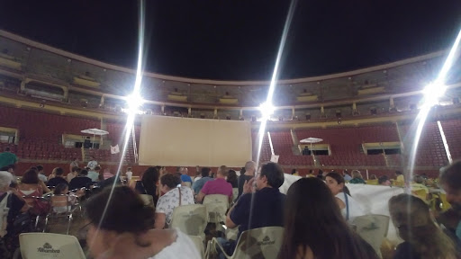 Leyendo reseñas sobre el cine de verano, que aclarar algunas cosas que creo que alguna gente se ve que no entienden. La separación de zona de sillas y zona de mesas, tiene un porqué. Las mesas pertenecen al ambigú, que es una empresa a parte al cine. Por lo que como cualquier bar, pone las mesas a disposición de sus clientes. Entonces es normal, que no dejen consumir de la calle ninguna comida, bebida o aperitivos. (Lo normal en cualquier bar. O por ejemplo ¿vas al bocadi y te dejan sentarte en una mesa pidiendo solo bebida y tú sacas los bocadillos?). Pues aquí igual. Lo que no es lógico que vayas con neveras y bolsas y enciman te pongan una mesa para que cenes tranquilo. Además el ambigú tiene precios populares, a comparación con otros cines. Los precios son prácticamente precios de bar. Y muy importante, el cine no pone trabas a qué puedas entrar con comida de tu casa. Distinto es si traes comidas de otras empresas( Pizzas, Hamburguesa, Kebab, China, Etc... Es decir, empresas de comida rápida, que por razones higiénico sanitarias no te dejan. Solo que si traes comida de tu casa, tienes que sentarte en la zona de las sillas. Cuando tú vas al cine de verano de la plaza de toros, pagas la entrada y tienes derecho a sentarte. No...