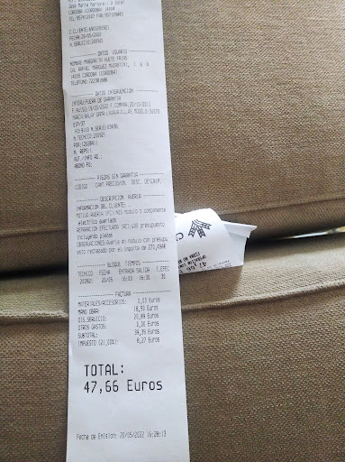 Read morePésima coordinación entre la tienda y el técnico. La señorita de la tienda, creo que se llama Eva, me dio un presupuesto de 170 € por arreglar el lavavajillas y cuando vino el técnico a casa dijo que salía por 386, que ella no es quien tiene que dar los presupuestos, que quien ve la avería es él y llevaba toda la razón. Pagué la visita y me compré uno nuevo. La señorita favorece a la tienda haciendo que entre trabajo, pero perjudica la imagen del servicio oficial de Balay Después de leer la respuesta, llena de mentiras e invenciones, que el propietario da a mi reseña, DESACONSEJO TOTALMENTE ESTA TIENDA donde no sólo no se acepta un problema de funcionamiento, un problema que el propio técnico reconoció, sino que también se defiende a una empleada que hace lo que no debe en vez de disculparse con el cliente. La única verdad que dice el propietario es que no consta ningún presupuesto por escrito.Es cierto. Yo confié en lo que una empleada de un establecimiento supuestamente serio me dijo, pero ya veo que no son dignos de confianza alguna. NUNCA MÁS. Afortunadamente el nuevo lavavajillas no se lo...