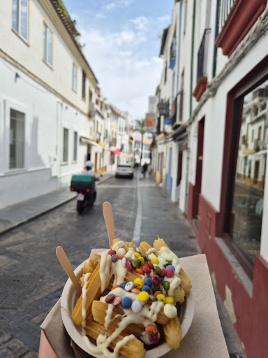 Englisch: I walked past and couldn’t resist – the place immediately caught my eye, and it turned out to be the best decision. Huge variety: big churros, small ones, extra thick ones – some I didn’t even know existed. Everything looked amazing – and tasted even better. Crispy on the outside, soft on the inside, not greasy at all. If you're in Córdoba and skip this spot, you're seriously...