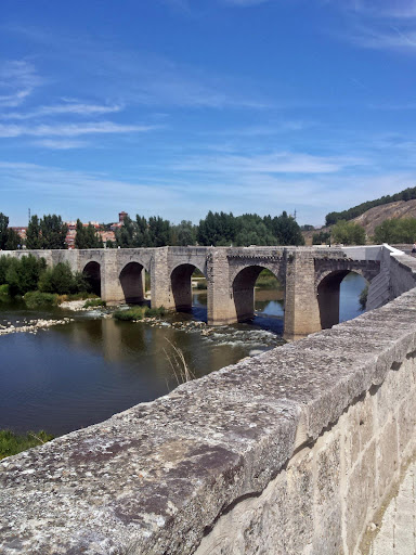 Read moreUn puente medieval de estilo románico. Esta zona del río es paso humano desde la prehistoria y hubo asentamientos íberos en su entorno. Durante la Guerra de la Independencia se desarrolló en la margen derecha del Pisuerga la Batalla de Cabezón de Pisuerga, un intento de Wellintong de frenar el avance de las tropas francesas que venían de refuerzo. Tras ser derrotado el Ejército de Castilla (formado por gente humilde sin experiencia), el almirante inglés decidió...