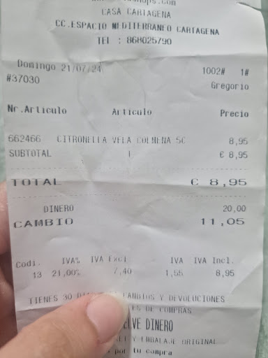 Read moreFui a echar un vistazo a ver si merecía la pena comprar algo, y para mi suerte decidí coger una vela de citronela para ahora el verano, es cierto que no estaba en "rebajas", su precio 8,95€ he pagado por ella, llero a casa y al ir a quitar (que obviamente no lo he hecho) el embalaje he visto que estaba TACHADO SU PRECIO ORIGINAL DE 6,95€, voy a mi ticket y veo que NO devuelven el dinero, cuando eso es ILEGAL dicho y escrito por la Ley del consumidor, diga lo que diga el empresario, es ILEGAL en este comercio y en cualquier otro, que no os engañen, ya me he puesto en contacto con atención al cliente, a ver si me dan una solución coherente y que sea legal. Dicho todo esto, no vuelvo a pisar la tienda, la cual, aconsejaré a mis amigos y familiares que NO vayan, aunque creo que irán a cerrarla así imagino que dejarán de estafar. Adjunto fotos de que...