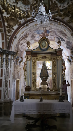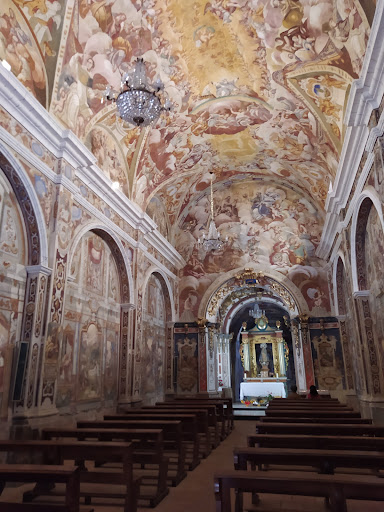 Sus paredes, recientemente restauradas, contienen frescos del s. XVIII, y su decoración interior, que abruma a primera vista, contrasta con la sobriedad de la fachada blanca.