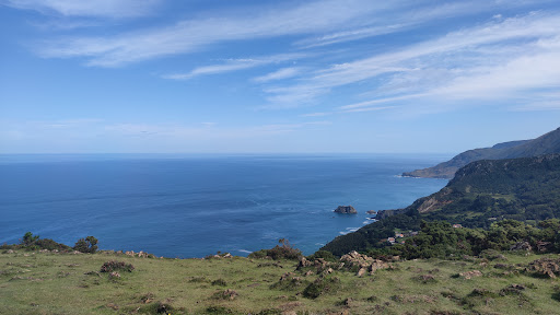 Read moreMerece la pena la visita por las vistas espectaculares y si os gustan los animales, aquí podréis ver caballos y algunas redes pastando en el monte, ojo donde pisais de camino a las mesas y banco del mirador. El aparcamiento está al lado de un repetidor de televisión y es amplio, podéis aparcar si vais con una caravana pero no hay servicios para ella justo aquí. Hay un par de miradores más que están cerca, desde este se ve el Santuario de san Andrés de Teixido y la ría. Merece la pena bajar luego hasta el Santuario y continuar por un camino que lleva a la fuente de San Andrés y los acantilados. No es la mejor foto pero es la única en la que no...