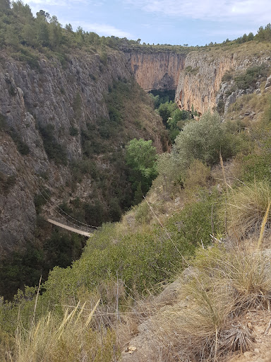 Travelling towards Chulilla on the CV-394, past the Ecoparc turning, there is a cabin on the right, but no parking available. Head further on and just as you approach Chulilla, there's a car park. However, if you setoff from here, you will need to walk along the road for 10 minutes to the cabin. Then there's a 2km rocky path along the top of the canyon to reach the bridges, but you can look down on the Charco Azul pool from here.