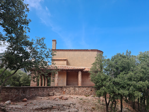 Diario de un curioso. Lunes 8 de mayo de 2023, 9h 57'. Ermita que encontramos en el ascenso del Monasterio de Montserrat a Sant Jerini. Adosado en una de sus paredes encontramos un epígrafe en el que podemos leer: "GLORIOS ARCANGEL SAN MIQUEL, PATRO DAQUESTA MUNTANYA SAGRADA, DEFENSEU LA DE LES POTENCIES AD VERSES ALLUNYEU-NE EL PECAT, SALVEU-LA DE TOTA ME NA DE DESGRACIES, LES QUE DESTRUEIXEN L'OBRA DE DEUI LA DELS HOMES PER MEDIACIO DE SANTA MARIA. MARE DE DEUI SEMPRE VERGE, ELEVEU.COM UN ENCENS ALA PRESENCIA DEL SENYOR LES ORACIONS DELS SEUS MONJOS SACERDOTS ESCOLANS I PELEGRINS.PRESENTEU TAMBE A L'ALTAR DE LA MAJESTAT DIVINA LOFRENA DE LLURS VIRTUTS, CONVERTIDES EN LLOANÇA ANGELICA JUNTAMENT AMB LA FORMOSOR DE LA MUNTANYA ON ARBRES ROQUES PLANTES FLORS. CEL IBOIRA FORMEN UN GRANDIOS CONCERT DE LLUM I DE VIDA QUE PROCIA MA LA GLORIA DE DEU PER NOSTRE SENYOR...
