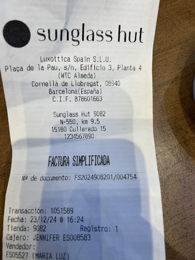 Read moreNo recomiendo esta tienda, compre unas gafas de 345€ en garantía se empezó a romper una patilla, no tienen servicio para reparar ni se preocupan de al menos solucionarte el problema ,solo quiero reparar las gafas, además es un defecto de ellas y para compensar te hacen precio en otras gafas,pagando,personal poco eficiente,quedan de llamarte y no lo hacen!!! Que desastre, no recomiendo...