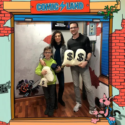 Read moreHoy hemos visitado la tienda de comics con el enano de la casa (la temática animaba a ello jeje) lo hemos pasado genial. La ambientación muy buena, muchos detalles y muy cuidados. Las pruebas con un nivel de dificultad muy bueno, nos han dado algunas ayudas ( Mola el modo de darlas) pero eso más que una pega, para mi es una virtud de lo bien que está echa la sala y de su complejidad, siempre se te pasan cosas por estar tan metidos en el juego y si fuese sencillo sería aburrido.El enano (7 años) se lo ha pasado teta y varios juegos los hemos resuelto gracias a él, por cosas que el veía que nosotros no jeje y de eso se trata, de trabajar en equipo, aquí todo el mundo aporta, y en esta sala eso es muy importante, ya que hay varias pruebas que se pueden ir haciendo simultáneamente y la comunicación es importantísima. Tiene detalles y pruebas que no habíamos visto en otras salas y eso nos gusta y nos sorprende. El máster un chico muy simpático, nos estuvo enseñando esos detalles que no nos dimos cuenta mientras jugábamos y pasamos un buen rato de charleta. Bueno lo dicho si pasáis por Astillero y os gustan las salas de escape os la recomiendo al 100%. Está divertida, echa con mucho mimo y vais a pasar un...