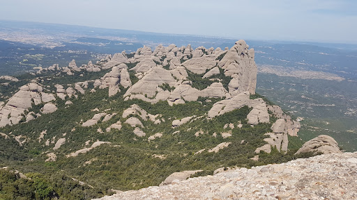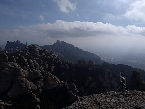 Excepcional mirador de la zona meridional de Montserrat. Cim d'accés complicat, tècnic, complex a nivell d'orientació i físicament exigent, no apte per a tothom. Amb alguns passos complicats, sobretot els dos primers de la Canal dels Micos. També hi afegiria un parell de flanquejos un pèl delicats a la sortida del Torrent del Migdia. Fa uns anys estaven assegurats amb uns passamans de cable o corda, però els integristes radicals de la "neteja" de Montserrat els han tret i han ensorrat els espàrrecs dels parabolts on estaven ancorats. Si algun dia algú cau i es fa mal... No recomano fer aquesta excursió amb la roca humida o mullada. Recomano dur casc, arnés i bagues d'ancoratge per algun punt on convé anar assegurat, especialment la sortida cap a la dreta de la canal dels Micos, que no és difícil però és molt exposada. Aquí sí que hi ha cable per assegurar-se. Finalment, si la tornada es fa pel vesant sud, hi ha una baixada molt vertical d'uns 10 o 12 metres, equipada amb una cadena i una corda. Si no es vol baixar "a pols", és recomanable portar una corda de 24m (o més) per...