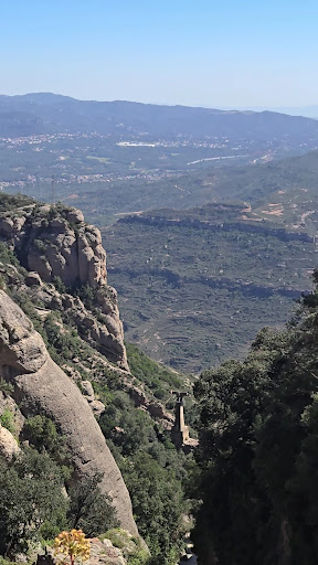 The Funicular Aeri de Montserrat, also known simply as Aeri de Montserrat, is a historic cable car system that offers breathtaking views as it transports passengers to the Montserrat Monastery, one of Catalonia's key spiritual and cultural sites. Opened in 1930, this funicular was developed to provide a direct and efficient access route to the monastery from the valley floor, complementing the railway service available then. The construction of this aerial lift marked a significant achievement in engineering for its time, showcasing innovative design to navigate the challenging terrain of the Montserrat mountain.