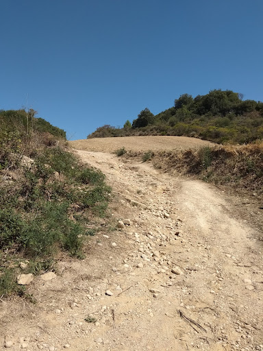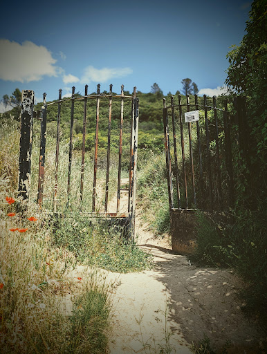 If you park at the monastery below the cross (pictured), it's a pretty cool 3km hike. Just go down the dirt road and take the forks to your right, wending your way around the arroyos toward the villas and vineyard. Bring some water, a hat, good shoes, and pants that can handle the brush. One of the first villas, just past a small gate, has some dogs that won't be happy to see you, but they're behind a fence. You're almost there at that point. You should see a sign pointing toward a neat little villa. To the left side of that villa's gate is another small path. Just a couple hundred feet down that you'll see the gate into the park.