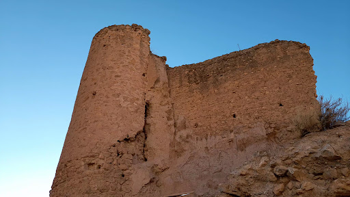 Castillo defensivo de la Edad Media, Fue construido en época nazarí, entre los siglos XIII al XV. El acceso al recinto se hacía a través de una puerta que se situaba al Este de la pequeña meseta en la que se asienta la fortaleza y de la cual, en su borde, se conservan restos de murallas de mampostería y de tres torreones, lo que indica con claridad su perímetro, resultando ser más grande de lo que aparenta a simple vista. Lo principal que queda del antiguo castillo, corresponde a una torre maciza circular de 4,60 metros de diámetro y 11 metros de altura, construida en mampostería con enfoscado de cal, situada en el interior del recinto amurallado. De la torre parte hacia el Norte un muro que llegaba a alcanzar la misma altura que aquella, estando construido por dos partes claramente diferenciadas, una, la primera en orden cronológico de construcción, orientada al Este, formada por un muro de tapial con paramento muy rico en cal y relleno de tierra; la segunda, al Oeste, una fábrica de mampostería, levantada al mismo tiempo que la torre circular. En el lado Este del muro habría una habitación, accediéndose a su cubierta plana a través de una escalera circular que rodeaba a la torre por el exterior. Es posible que el muro descrito, enlazase por el Norte con otra torre, ésta cuadrada y hueca, situada en el ángulo Noreste de la fortaleza y que debía defender la puerta de entrada al recinto. De esta torre se conservan las partes correspondientes a la planta baja de los muros Sur y Este, construidos en varias etapas, con fábrica de mampostería y hormigón. A esta torre debía de accederse por su planta primera, a través de la cubierta plana mencionada, mientras que a la parte alta de la torre circular se llegaría por el muro intermedio, desde aquella torre. Adosado al gran muro, por su cara Oeste, se encuentra enterrado el aljibe. Es de planta rectangular, de dimensiones interiores 4 x 1,95 metros y está construido con muros de hormigón y bóveda de mampostería que se conserva entera. Sus paramentos interiores conservan el enlucido y el color almagra original. Interiormente, presenta un hueco cegado por su pared Oeste y se abre una puerta de acceso al Sur, ya que se usa como leñera. El hueco del brocal se encuentra cegado en la zona Norte de la bóveda. Por encima del aljibe hay también restos de habitación, conservándose las señales del anclaje de los rollizos de la cubierta en el paramento del muro. Se observan en la construcción zonas que han sido reconstruidas en épocas posteriores, con recalces de mampostería y remiendos con mampuestos de...