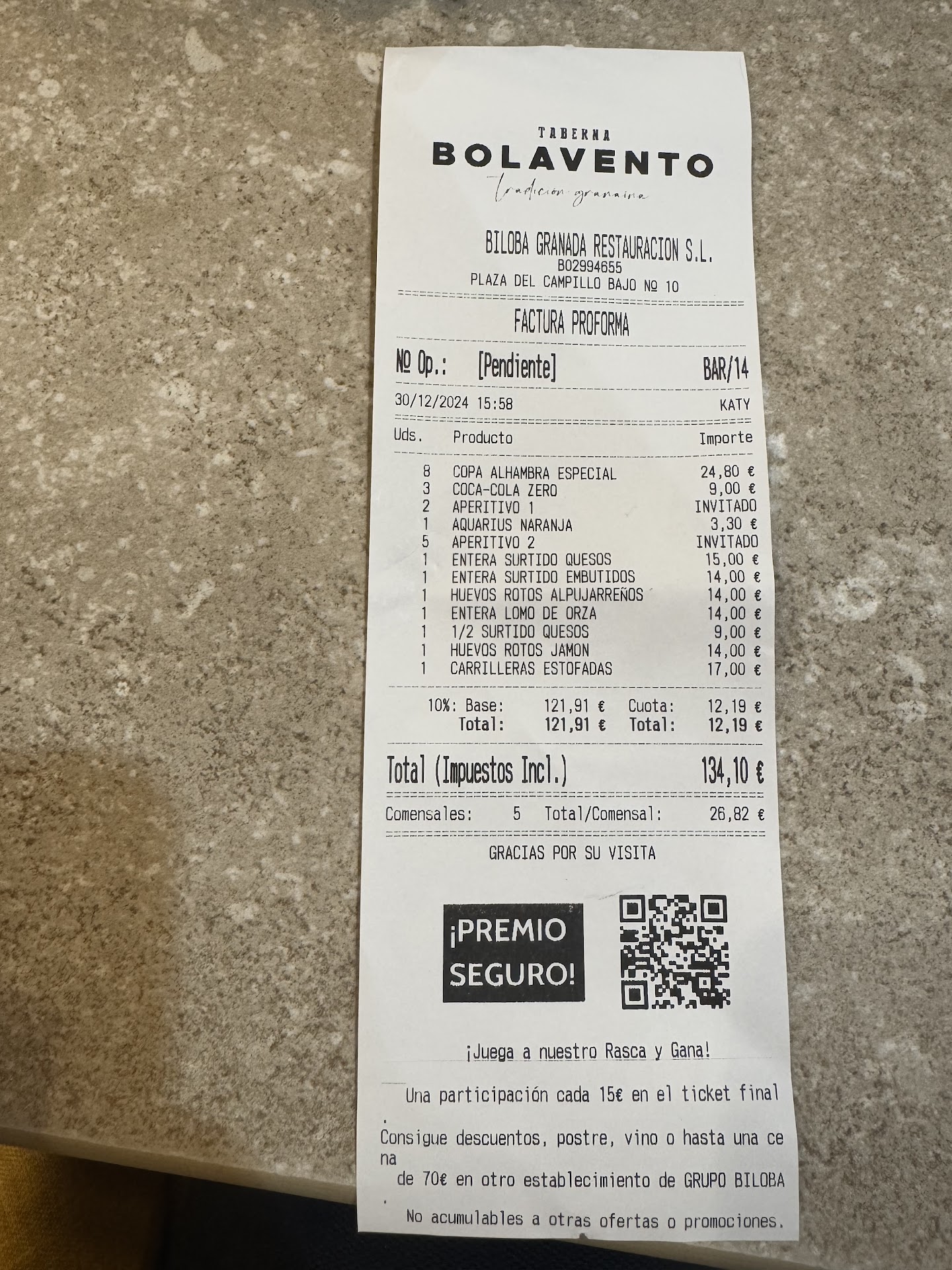El servicio fue extremadamente rápido y atento, pero la verdad que no salimos contentos con el resto así que no volveremos en Granada hay sitios espectaculares y con mucha...