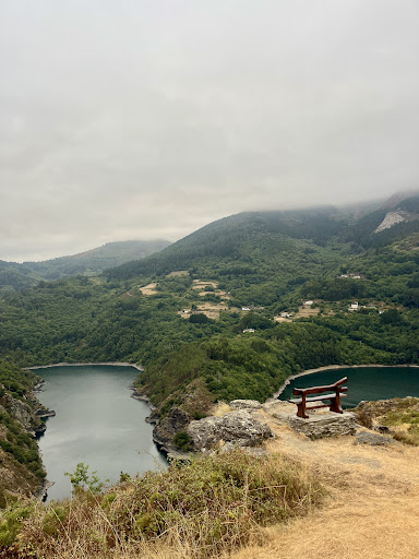 Read moreUn paraje precioso. Mereció la pena recorrer algunos tramos de carretera de esos en los que parece que no caben dos coches si se cruzan. Llegamos pronto, sobre las 10 de la mañana porque había alta probabilidad de lluvia a partir de las 12h. No había nadie, lo que nos permitió disfrutar de los sonidos de la naturaleza. Una magnífica vista, desde uno de los bancos más bonitos de Asturias, sobre el agua del río Navia, en el embalse de Dorias. En el camino que lleva del pueblo (Lombatín),al mirador, se pueden ver huertos, Frutales, como naranjo, limonero, cerezo, manzano. Un vergel que conduce a un rincón con mucho encanto. Muy...