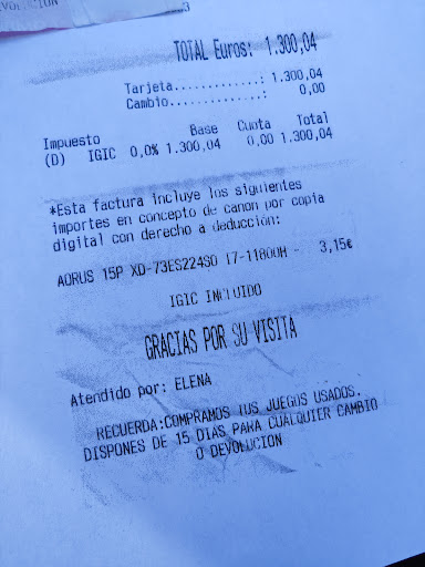 Read moreAtención pésima, entramos a la tienda estando vacía, damos las buenas tardes y recibimos silencio por respuesta por parte de los empleados, los cuales eran dos chicos y una chica por detrás del mostrador hablando con algún amigo de ellos o un compañero fuera de turno, tras estar más de 15 minutos en la tienda, "Ya con varios clientes en la tienda" ninguno es capaz de acercarse a preguntarnos si necesitamos ayuda o buscamos algo en concreto, pues bien, nos fuimos devolviendo a su sitio lo que íbamos a llevar que era un sistema de sonido subwoofer y un juego de play4 por la mala atención ya que no paraban de estar de risas y fiestas entre ellos contando sus batallas.