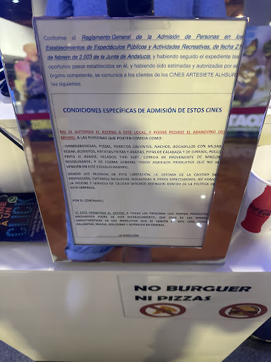 15 agosto 2024 , acudí a este cine para disfrutar de una película. Al intentar acceder a la sala, el personal del cine me impidió la entrada con comida adquirida fuera del establecimiento, argumentando que estaba prohibido. Esto ocurrió a pesar de que la normativa vigente, específicamente la Ley 17/1997 de Espectáculos Públicos y Actividades Recreativas, permite expresamente la entrada con comida y bebida comprada fuera del recinto en este tipo de establecimientos.