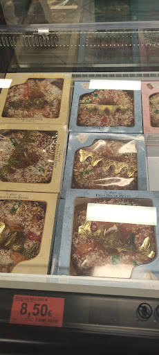 Hay bastante variedad de los básicos, así como una zona de comidas preparadas y un par de mesas justo afuera del supermercado para comer si vas en apuro. Hay bastantes carritos, cajas registradoras abiertas, y por lo visto hay parking (no lo utilicé). Lo que más agradezco es la zona de...