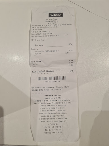 Read moreMi nombre es Víctor, después de tener un problema con Worten online,método de compra que no recomiendo a nadie, y después de intentar contactar con Worten online cosa que es casi imposible, pase por varias tiendas y llame a todos los Worten Triana, siete palmas, el muelle incluso llegué a llamar a Fuerteventura, todos se lavaron las manos diciendo que ellos no tenían que ver con Worten online, hasta que fui al mirador y di con PACO, uno de los jefes de Worten el mirador, no solo no paso de mi problema, sino que me busco al instante una solución, cogió a un cliente muy insatisfecho y en menos de 5 minutos me resolvió el problema con una profesionalidad envidiable, yo ya lo conocía de mi breve etapa como empleado en Worten pero mi sorpresa es que no mantiene la profesionalidad de antaño, sino que ha mejorado incluso, desde aquí doy las gracias a Worten el Mirador que me dieron un trato excelente en especial a Paco, y recomiendo no comprar online e ir directamente a tienda y aprovechar a los buenos profesionales que tienen, recomendaría ir a Worten el Mirador aún teniendo otro Worten...