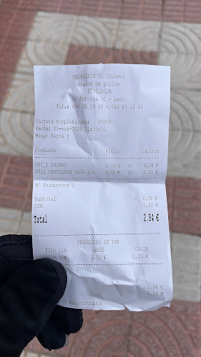 *De entrada no huele a aceite recalentado. 👌🏻 *Lugar limpio *Luminoso *Mesas en interior. *Baños limpios . *Muy atentas madre e hija. "Tomé un chocolate y estaba delicioso, textura delicada en boca y suave al paladar , sólo leche semi desnatada y cacao Valor . (Sin mas aditivos) *Los churros solo quise tres y me los hizo en ese momento, crujientes , nada aceitosos y mass delicada no saturan ni en boca ni estómago . *Me invitaron a una porra y de igual manera , exquisita. *Y un churro de chocolate super suave. *Todo se hace a la vista del cliente. *Asan pollos y te ponen guarnición si quieres. *También bocatas de pollo.