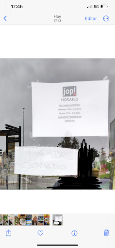 Read moreTienda exclavista. Los trabajador@s hacen 45/50 horas semanales, en vez de 40 h. Por supuesto sin cobrarlas ni descansarlas. Turnos de 8 h continuas con descansos de 15 minutos ( en lugar de 30 min como establece la ley!) Trabajan TODOS los domingos y festivos sin cobrar los 70 eu segun convenio, ni dar opcion a día libre por festivo trabajado. Les obligan a NO fichar (Firmar) en las horas que van extras. Tres meses trabajados y sin entregar contrato al trabajador siempre con escusas. SUPER controlados por las cámaras de la empresa hasta el punto de que te llaman la atención si te ausentas más de dos minutos para ir al baño. Me ratifico. EXCLAVISTAS Y NEGREROS que se aprovechan de todas formas posibles, tanto de los trabajadores como de los...