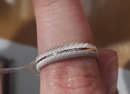 Finalmente, el 24 de julio vamos a por ellas y... ¡qué sorpresa! mi alianza sigue siendo el mismo modelo erróneo pero con más brillo. Cuando se lo comento, me dice que es el que yo pedí, uno que el tiene allí, que el siempre tiene los mismos modelos... Casualmente le enseño fotos de mi móvil donde aparecen mi alianza y otra que allí no tiene, a lo que él insiste en que el modelo de la foto y la mía es el mismo, "que será cosa de la perspectiva de la foto". Nos emplaza a ir el viernes 26 a por ellas y, cuando aparecemos por allí, ¡sorpresa! no las tiene, tenemos que volver el lunes a por ellas...