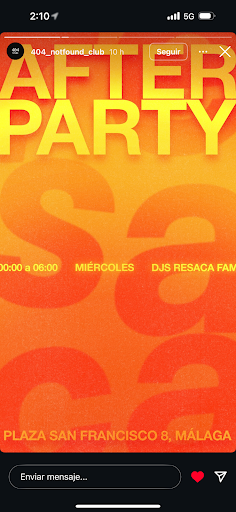 Read moreAyer fui con mis amigas a la discoteca 404 Not Found en Málaga, y aunque la experiencia fue bastante buena, hay algunos detalles que quiero comentar. En cuanto a la comida, no la probamos, así que no puedo evaluarla de forma justa. Por otro lado, el servicio fue excelente. Al principio, los porteros me parecieron un poco intimidantes, pero después fueron bastante amables y nos dejaron entrar sin problemas, incluso cuando una de mis amigas se olvidó el DNI físico en casa. La portera fue muy simpática y profesional, y las camareras que nos atendieron también fueron amables y sonrientes, lo que hizo que la experiencia fuera agradable.