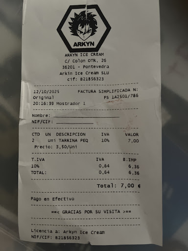 Además, me dieron una tarrina con un agujero por debajo, por lo que se me derramó todo el helado y acabé manchando la sudadera. No me quejé en el momento porque había muchísima gente esperando —la mayoría venía de rebote por el cierre de Inma—, pero fue un desastre.