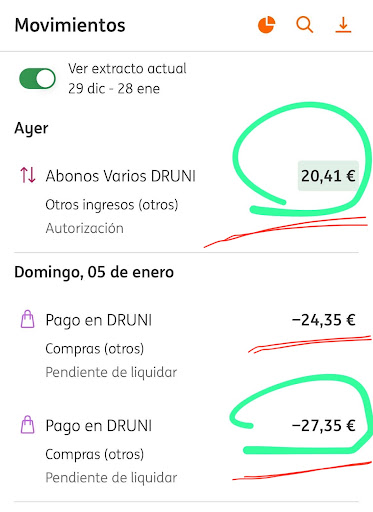 Escribí un mensaje de Facebook a Druni - por fin una respuesta: "transladamos tu consulta al departamento correspondiente para que contacten contigo lo antes posible", pero no lo han hecho.