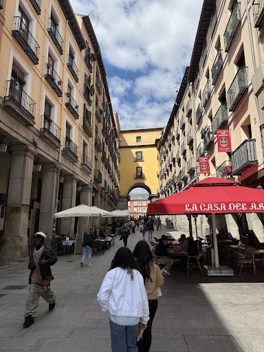 Framed by beautiful, symmetrical architecture and vibrant red façades, the square is alive with charm. Its arcades are filled with cafés, shops, and street performers, creating a dynamic yet laid-back atmosphere that’s perfect for people-watching, sipping a coffee, or enjoying classic Spanish tapas.