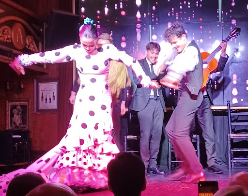 Read moreFabulous show for any music and dance lover, especially neophytes to Flamenco like us. The virtuousity of the solo guitarist blended with the syncopated clapping and staccato dance steps combining to create infectious rhythms that ebbed and flowed in mesmerizing waves. The male voices were powerful and brought to mind Jewish cantors with their powerful and sustained vibrato. The dancers were spellbinding, slowly building to powerful crescendos punctuated by sudden stomps accenting the male's successive rigid pirouettes and the female's flowing arm and upper body movements. The performers seemed totally in the moment, seemingly improvising choreographed steps and claps with total commitment and mindfulness, despite the 3 shows nightly 365 days a year. Highly...
