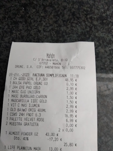 Read moreAyer estuvimos mis amigas y yo viendo perfumes, y una amiga empezó a probar uno, a lo cual se acerca la dependienta de mala manera a decirle, eso no es un tester y mi amiga le dice ah vale perdona lo siento no lo sabía y deja el perfume en la estantería, y le dice no no lo dejes allí. a lo cual yo hablando con mi amiga le digo y que tienes que hacer? y la dependienta dice pues pagarlo. lo cual me parece increíble cuando nunca hay testers. Minutos después mi amiga va a la cola ya que la dependienta estaba insistiendo mucho y de mala manera, y esperando yo le digo, está siendo maleducada contigo no lo pagues si no quieres y además algo que no te gusta, déjalo y nos vamos (estábamos hablando en menorquin) y ella desde lo lejos que estaba nos escuchaba y al lado de la cola se pone a decir : es que es com si foteguesis un moss a una cosa des super i ho deixis allá diguent que no ha estat aposta. dando mucha vergüenza porque toda la gente que está en la cola de giro