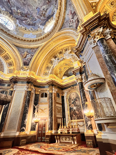 Die Kapelle liegt in der Nähe des Palacio Real und ist von einer reichen historischen Umgebung umgeben. Direkt nebenan befindet sich die Almudena-Kathedrale, die heute die Hauptkirche Madrids ist, aber einst eine eher bescheidene Kapelle war. Der Blick auf die Plaza de Oriente und die gepflegten Gärten fügt dem Erlebnis eine zusätzliche Dimension hinzu – ein Moment, um innezuhalten und die Verbindung zwischen Geschichte, Kunst und Religion in dieser besonderen Ecke Madrids zu würdigen.