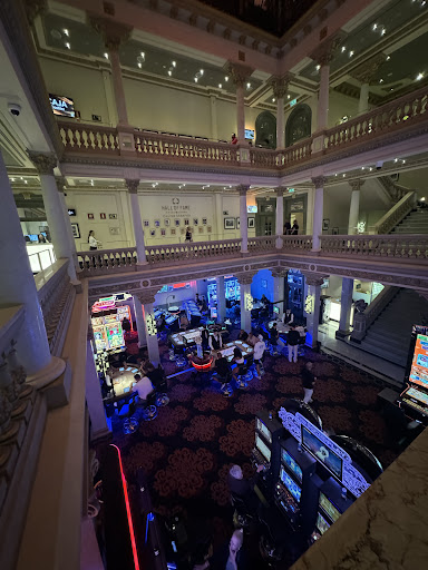 Poker and slots is their main attraction. The poker room on the 2nd floor is great. I'm a blackjack player and was slightly turned off by how they do things. They have 2 blackjack, 1 Texas holdem, and a roulette table. No craps that I saw. As for the blackjack: The dealer doesn't take 2 cards, they only take 1. They take their second card after everyone else plays out their hands This makes it especially annoying when they are showing an ace. Because them getting 21 depends on how many cards everyone else takes. But i was able to get used to that. Everything is digital. You have a touchpad in front of you where you place your bets, hits, splits, double downs, stays, everything. Hand gestures don't work. There is never a re-shuffle of a "shoe". The cards are constantly fed back into a shuffle machine that continuously shuffles the cards. Definitely keeps it random and makes even basic card counting impossible. The shoe scans the cards as they are pulled out. Your screen turns red if you're a bust before you even see the card. Just adds insult to injury. But, once I got more used to it I did ok. Paid for my weekend trip to Madrid, so I can't complain. Other things to note...there is zero table service. There is a button to press if you want service but they never show up. And if you donate to get a drink or even a bottle of water from the bar, the tables have no cup holders. Again, not a deal breaker,...