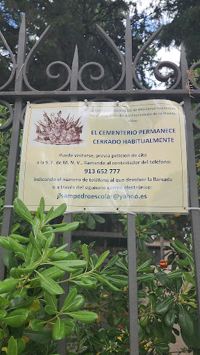 En este pequeñito cementerio construido en 1796, y rehabilitado por última vez en 2008 (2° centenario de los hechos del 2 de Mayo) se encuentran los restos de los 43 fusilados por las tropas de ocupación francesas en los altos de lo que entonces eran los altos de Príncipe Pío. No se encuentra abierto debido al vandalismo crónico de alguna mala gente que ya causó notables destrozos en los años 80. Una capilla con un sencillo altar y una escalera de descenso a la cripta, en cuyo interior se encuentran dichos restos de los fusilados en dos cajones de plomo y cinc. Como curiosidad, hasta su enterramiento aquí este cementerio estaba reservado para los empleados de lo que hoy es Patrimonio Nacional, ya que toda la zona, incluidas las Ermitas pertenecía a la Corona (de ahi que sobreviviera a la especulación inmobiliaria). Un hermoso azulejo de cerámica reproduciendo el famosísimo cuadro de Goya presenta la...