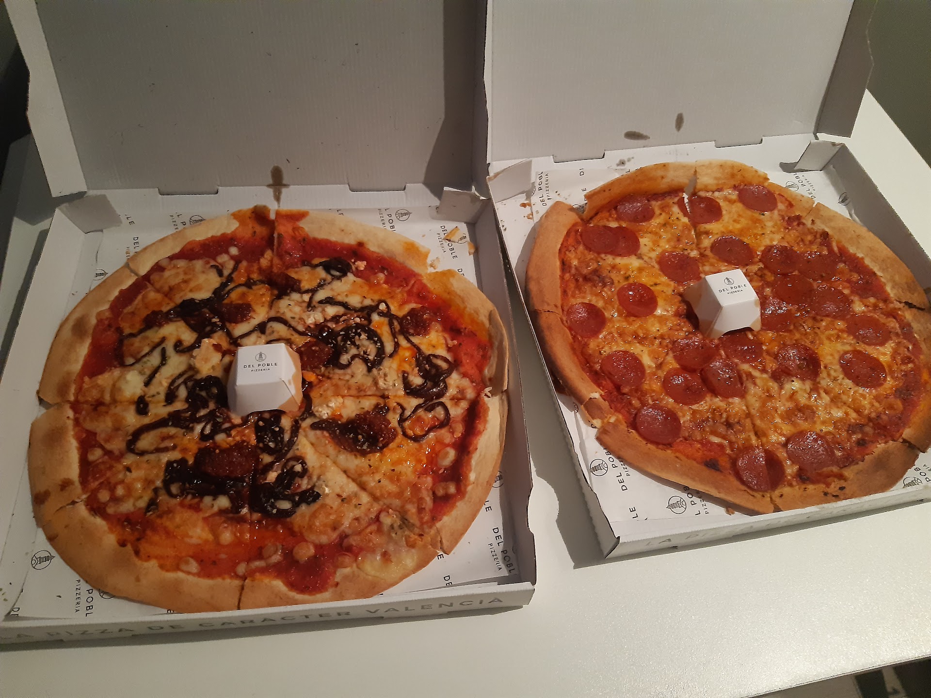 Pedimos ayer cuatro pizzas a domicilio. Llegaron frías, totalmente destrozadas, no tenían prácticamente relleno y el poco que llevaba estaba caido en el lateral de la caja.. y para colmo no tenían ni buena masa, ni sabor. La entrega la hacía Glovo: un repartidor con mochila a la espalda y las pizzas en posición vertical... Era la primera vez que pedíamos a P. Del Poble y la primera vez que nos hacía una entrega Glovo y lo han conseguido, no volveremos a pedir absolutamente nada a esta pizzería y no utilizaremos el servicio Glovo tampoco. Lo único que se salvó fue el repartidor muy amable. No sé si las fotos recogen bien el enfado que sentimos ---------+ En respuesta a vuestra contestación: Quién debería reclamar a Glovo por los servicios que prestan sois vosotros. Si no dan un servicio decente os quedáis sin cliente para la siguiente vez. Por otro lado creo que no habéis leído bien la reseña. Las pizzas, además de venir destrozadas, eran malísimas sin relleno y sin sabor y la masa de lo peor que he probado. Aquí tenéis un...