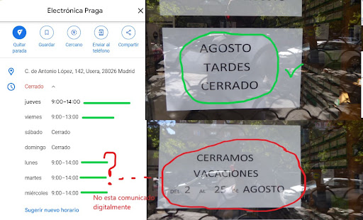 El sitio por lo general esta bien, tienen cosas de electronica que son difíciles de encontrar que pueden ser útiles para realizar ciertos trabajos. El establecimiento se mantiene limpio y ordenado que es lo que tendría que hacer con mis materiales que tengo. Siempre que lo he visitado nunca he pillado cola pero esta vez me he encontrado este inconveniente, que permanece cerrado el mes de agosto sin que estuviera comunicado digitalmente. Creo que es una gran desventaja para esta tienda que se haya tomado esta decisión porque primero debilitas la confianza a que los clientes se puedan fiar de que esta habierto esa jornada y segundo les haces gastar un tiempo que los compradores necesitan al hacerle creer una información diferente a la que de verdad existe, además de competir con las demás tiendas de cosas eléctricas que abren casi todos los...