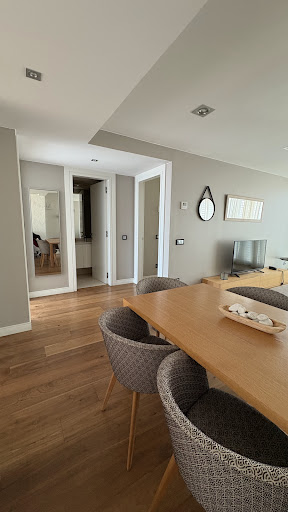 We stayed for two nights in their 2-bedroom Exclusive Apartment. Overall, we liked our stay and felt it was a good choice for our travel group of 4 adults.||Location: Excellent. This Aparthotel is centrally located on C/Gran Via 48, a short walk to the Puerta del Sol and the Plaza Mayor. Even the Royal Palace of Madrid is only a 11-min walk. A big bonus is the Carrefours supermarket being just around the corner. ||Interior space and condition: ||Lobby: Small and could be crowded especially around check-out time . Staff is courteous and helpful. ||Elevators: Small interior space (can fit only a couple of passengers with luggage at any one time). They tended to run slow.||Inside the apartment: |Spacious and uncluttered. Decor is modern and furnishings are kept in good condition. There are 2 bedrooms with one being an ensuite. (Negative: The ensuite sink is oddly designed; it is shallow so very easy to splash oneself when using tap.) The other bathroom is still convenient for use although smaller in size. Both baths could use better dispensing method of body moisturizer. What is provided is from a wall-mounted bottle with pump - the type of lotion used is runny and makes a mess by its quick squirts. ||- Sleep quality: Very good. This apartment is on the high floor (18th), situated away from the elevators, and at all times being quiet and free of ambient noise. Bedding is very good too. ||- Bedrooms have plenty of storage space. However, there are no luggage racks.||- Open kitchen: Large, clean, and have basic cooking utensils and tools. However, beware that there is a price list for coffee pods, tea bags, and even the small bottle of dishwashing liquid and sponge. ||- Outdoor pool and gym: Unfortunately, the pool was under renovation so we could not use it. The indoor gym is nothing to write about, being limited in space and has only a few pieces of equipment. ||Note that there is no stopping on C/Gran Via in front of the hotel entrance. Drop off/pick up by car will therefore need to consider an alternative arrangement, but requires only...