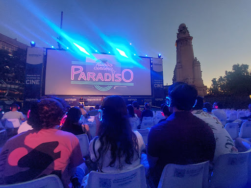 Read moreFuimos a ver por primera vez una pelicula en este cine de verano con estas vistas tan especiales y bonitas como es mi querida Plaza España. Y como no, debía de ser con mi peli favorita Cinema Paradiso!!! una experiencia súper chula!!!puedes comprar las entradas por internet o en taquilla. Hay que esperar un poquito hasta que abren y un poquito más hasta que empieza. Esto si me hizo un poco pesado. Palomitas y bebidas no estan mal de precio aunque la palomita se notaba que no eran recien hechas. Los cascos estaban recien estrenados y nuevitos. Lo que si me decepciono fueron las sillas, son incomodisisisimas. Cuando llevas una hora de proyección te duele la espalda y el cucu al ser de plástico y sin nada de cojines. Esto creo que una vueltecilla hay que darle. Ahora poder verla en tres idiomas que elijas y poder verla en versión original con los subtitulos en español me parece un detalle genial !!!si traeis más clasicos ire a verlos,...